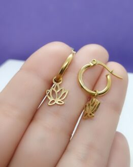 Acero dorado Argollitas Dije Flor de Loto