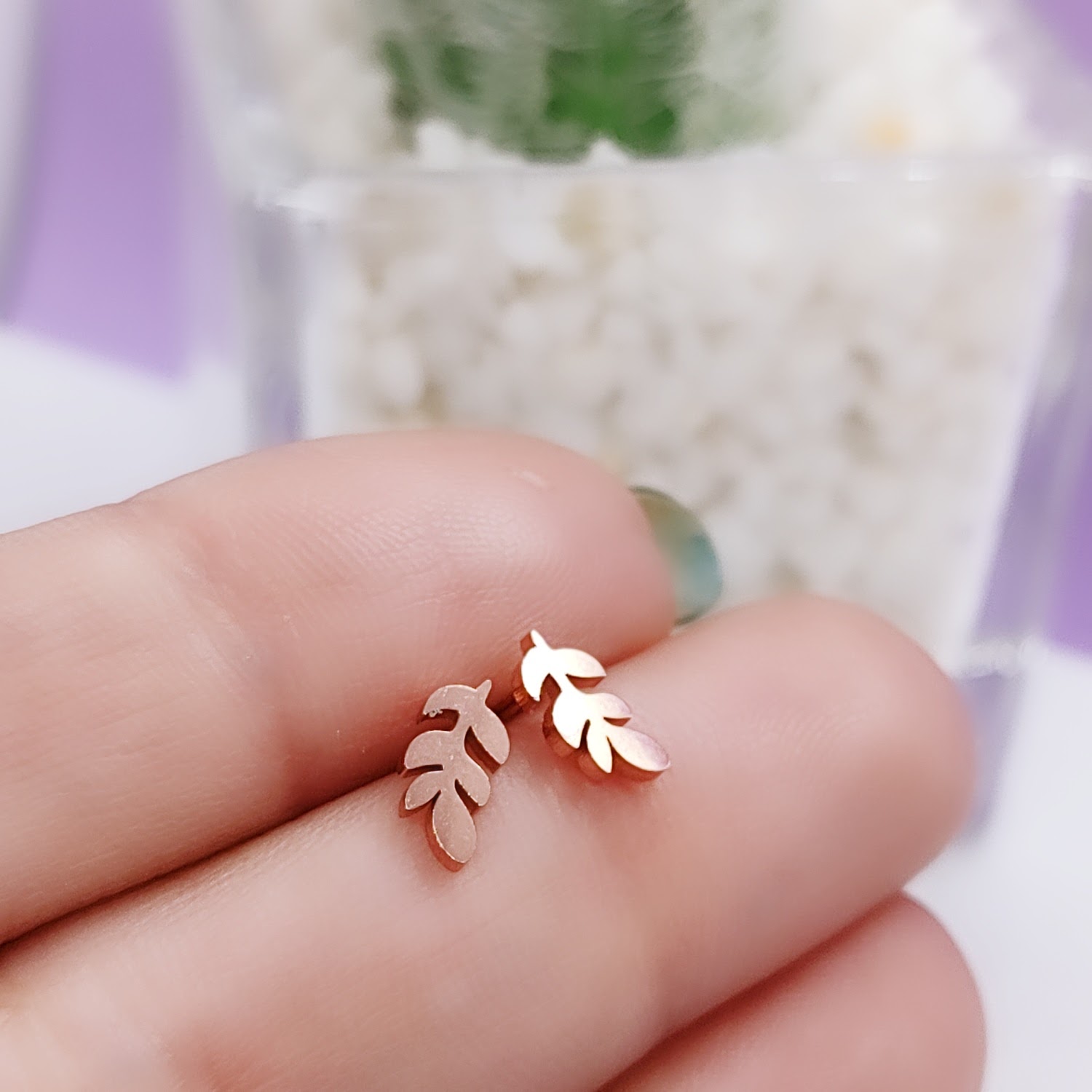 Acero rosé Mini aritos espiga cantidad