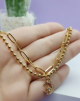 Acero dorado Pulsera doble Long Luna-Estrella (19cm)
