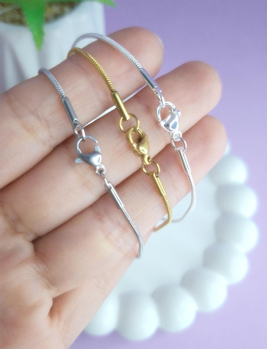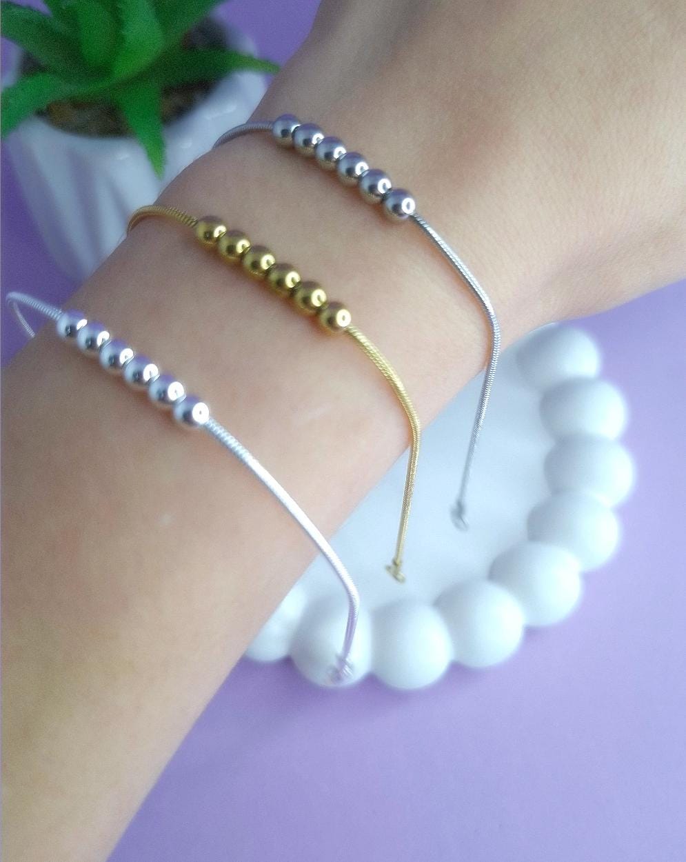 Combo x 3 pulseras bolitas(acero blanco, dorado y quirúrgico) cantidad