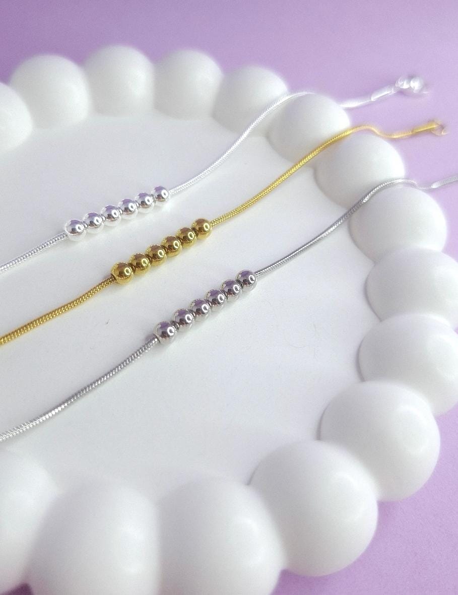 Combo x 3 pulseras bolitas(acero blanco, dorado y quirúrgico)