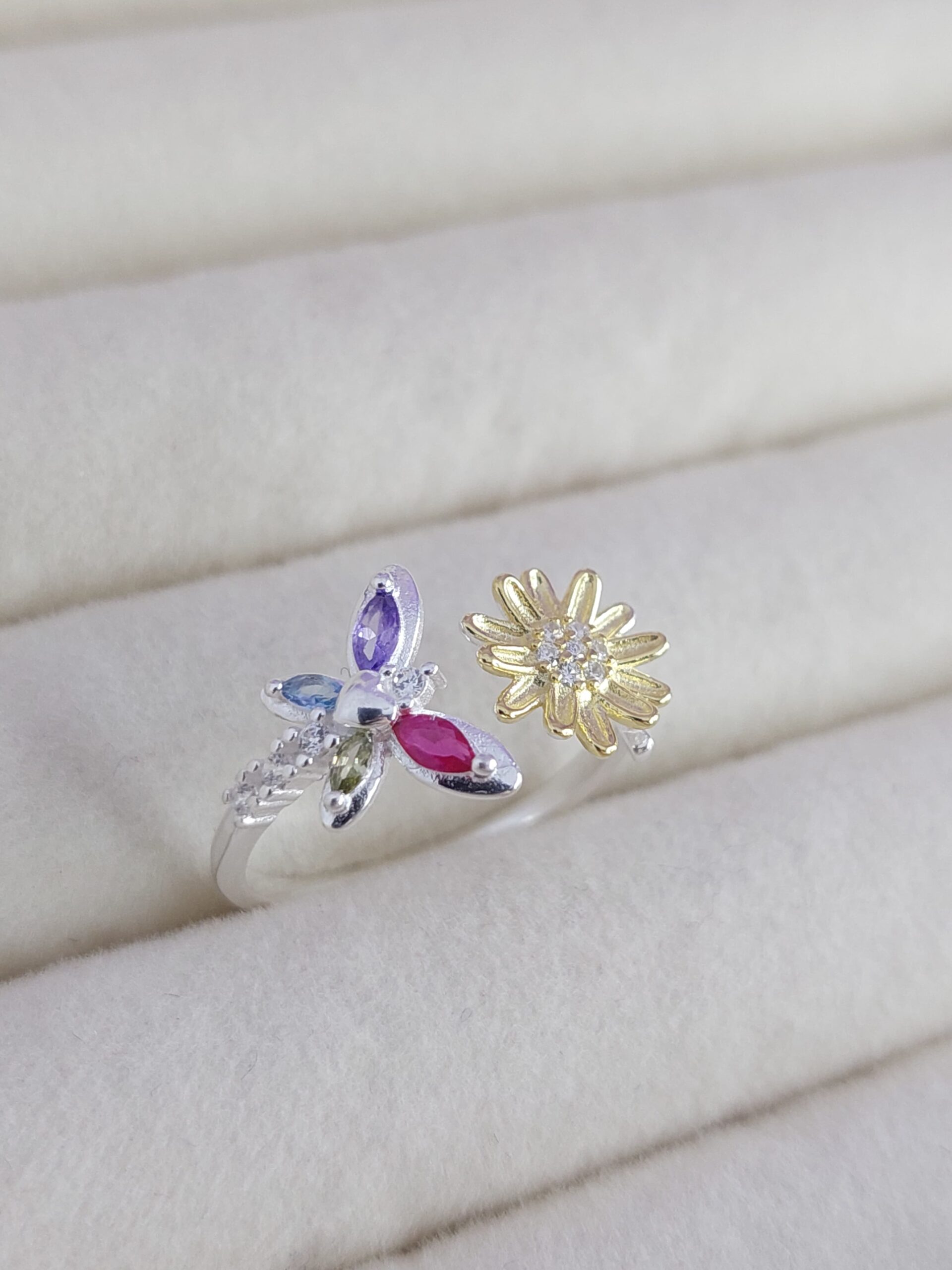 Plata 925 anillo margarita y mariposa (ajustable) cantidad