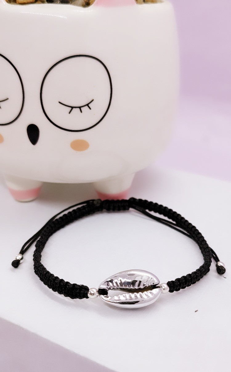 / Plata Pulsera Cordón negro ajustable Caracol