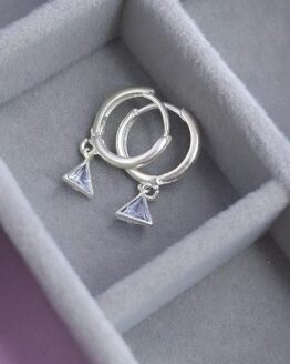 Plata925 laminada Aros Huggies cristal triángulo (14mm)