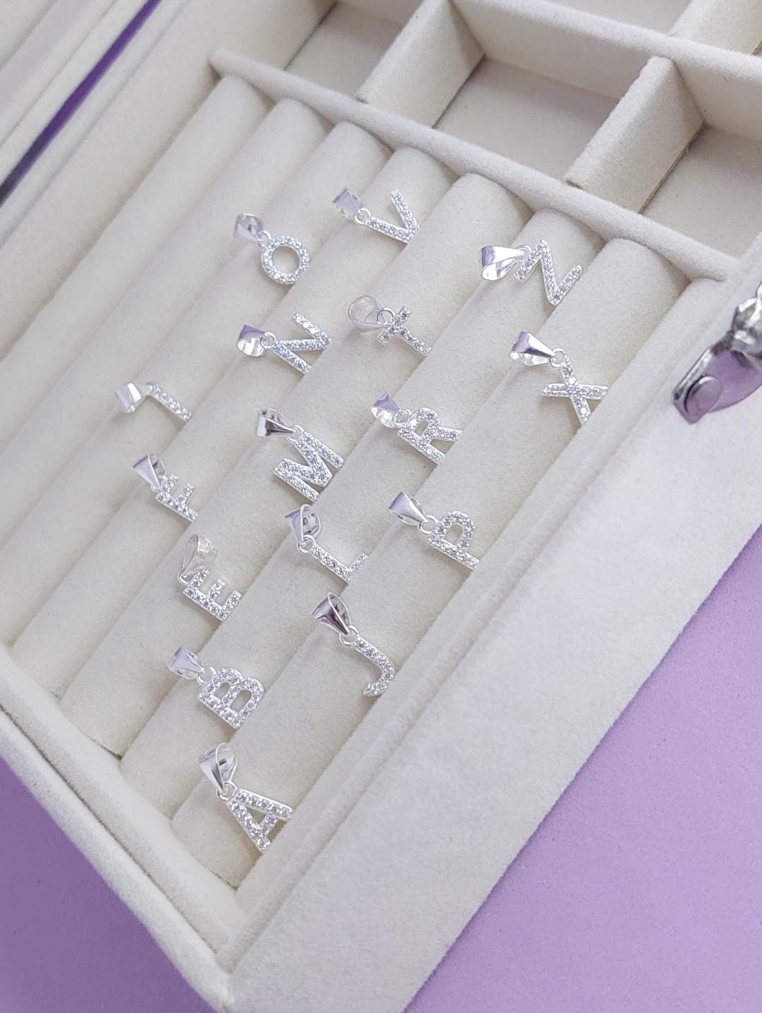 / Plata925 Dijes de Letras brillo (12 mm aprox)