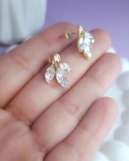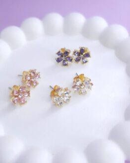 Acero dorado COMBO x3 pares Aros flores cristal (Perno de acero quirúrgico)